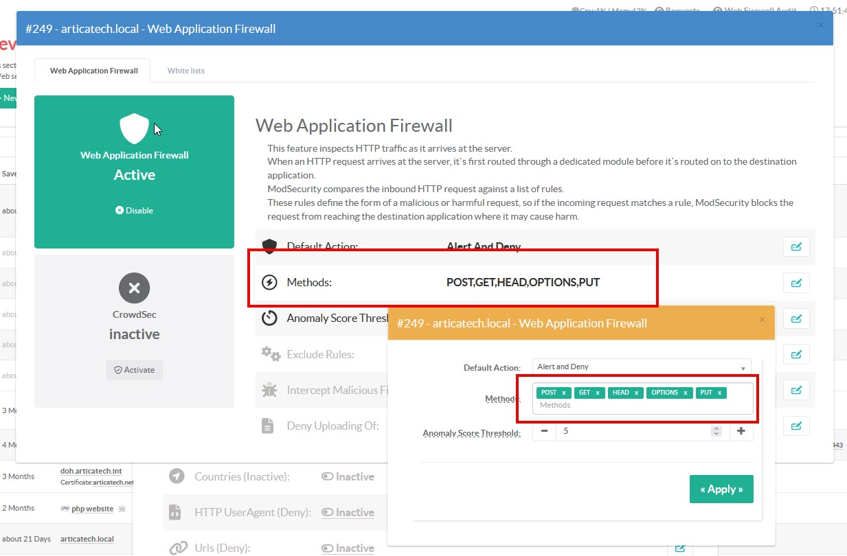 By default, if not set, all websites applies the POST,GET,HEAD,OPTIONS,PUT protocol methods
