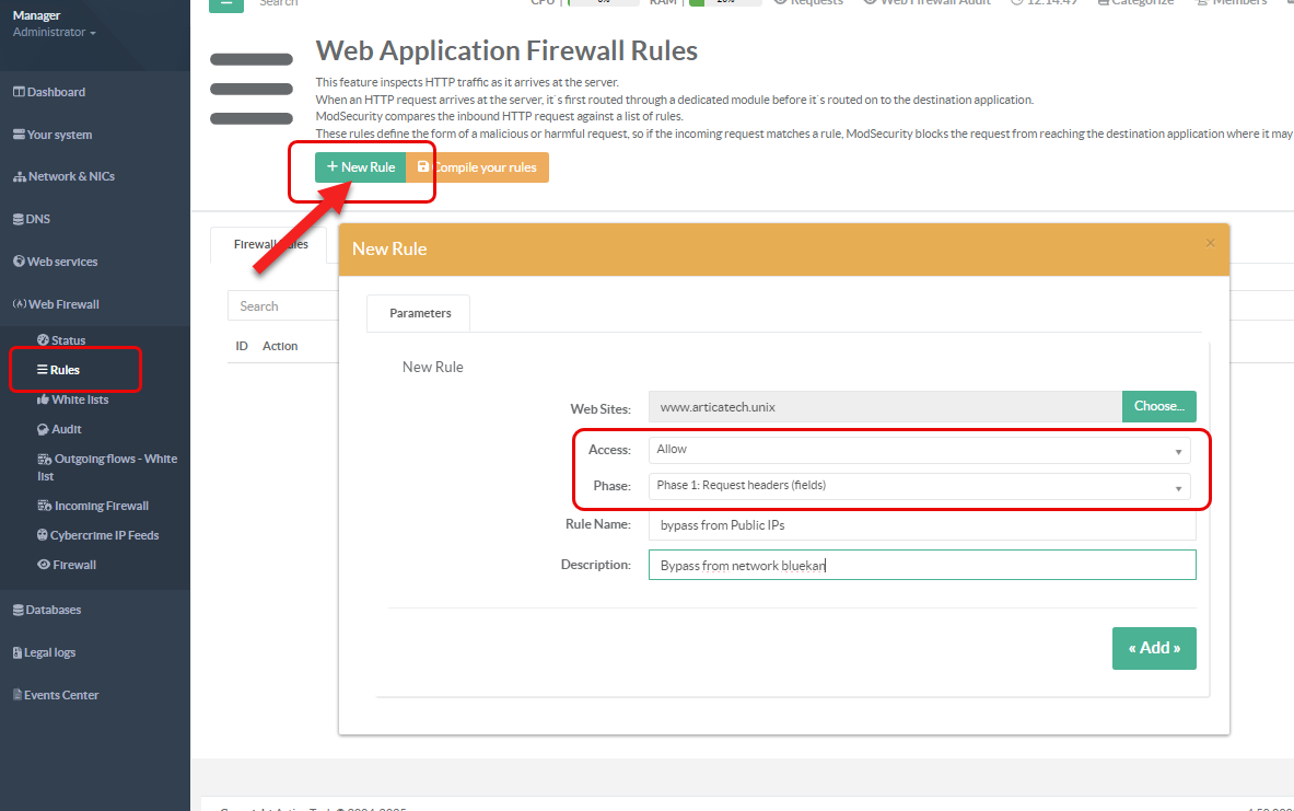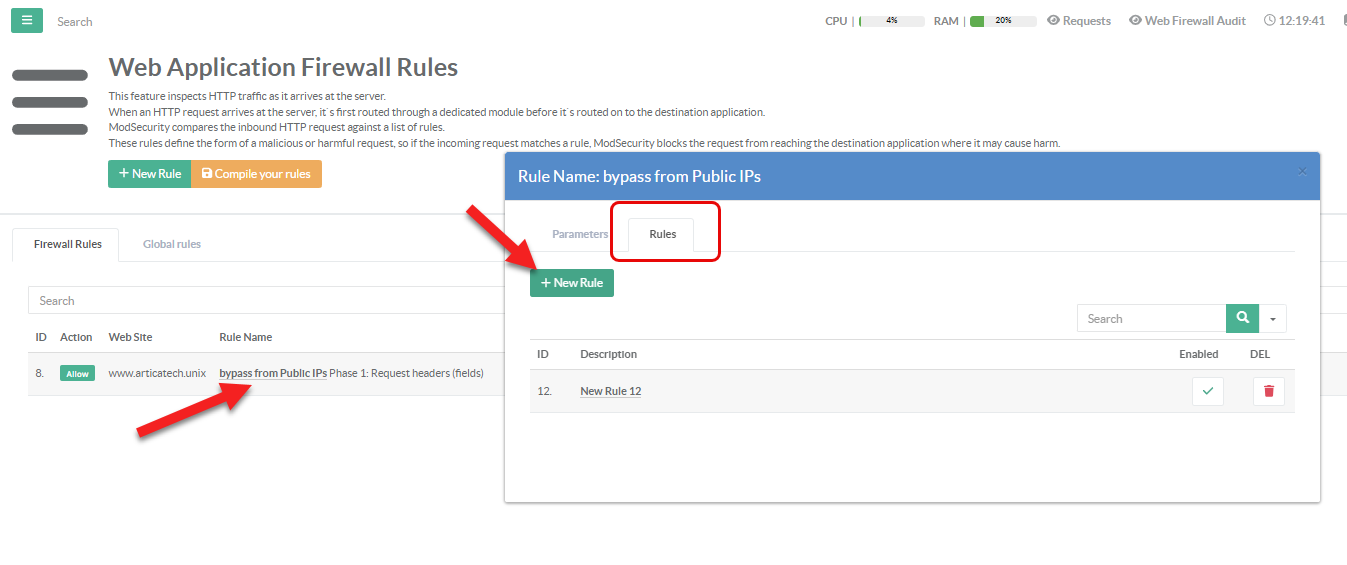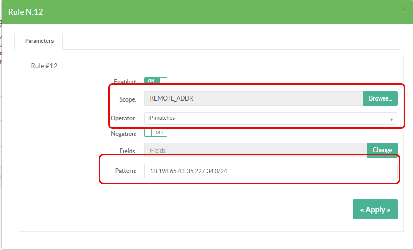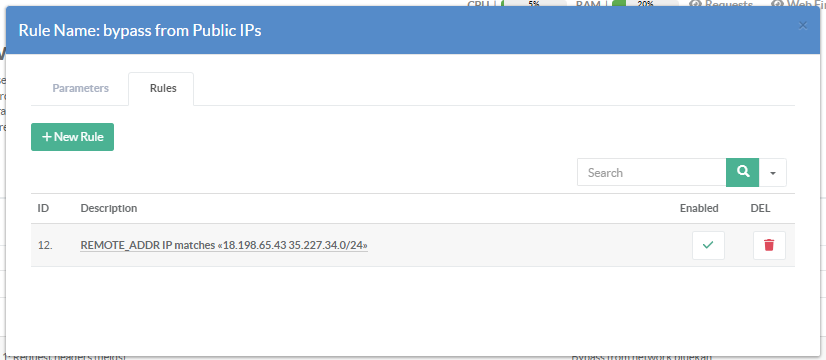 This action completely disables the WAF engine when requests originate from specified IP addresses.