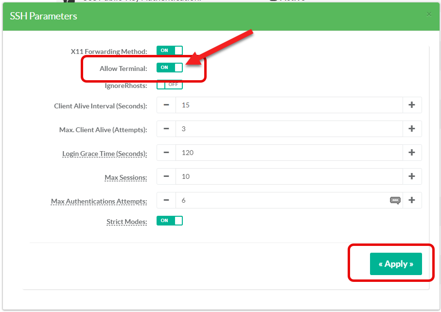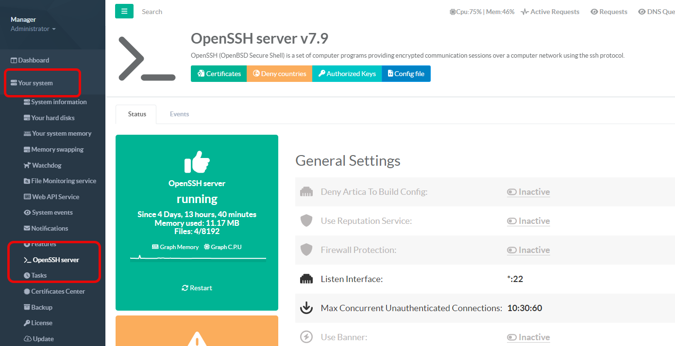On the left menu, go to Your system > OpenSSH server