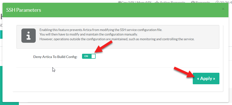 Enabling this feature prevents Artica from modifying the SSH service configuration file.