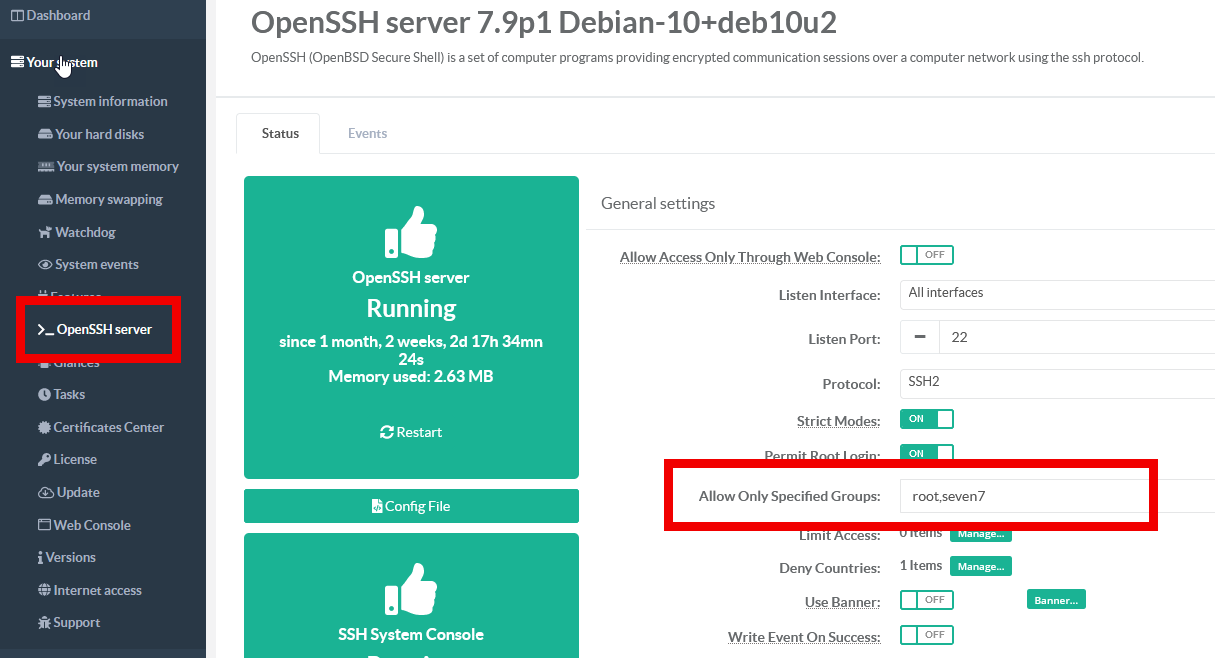 Your System > OpenSSH server
