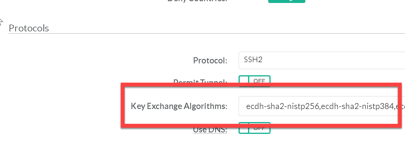 Key exchange is any method in cryptography by which cryptographic keys are exchanged between two parties; allowing use of a cryptographic algorithm. If the sender and receiver wish to exchange encrypted messages; each must be equipped to encrypt messages to be sent and decrypt messages received Ensure only strong Key Exchange algorithms are used like diffie-hellman-group1-sha1, diffie-hellman-group14-sha1, diffie-hellman-group-exchange-sha1