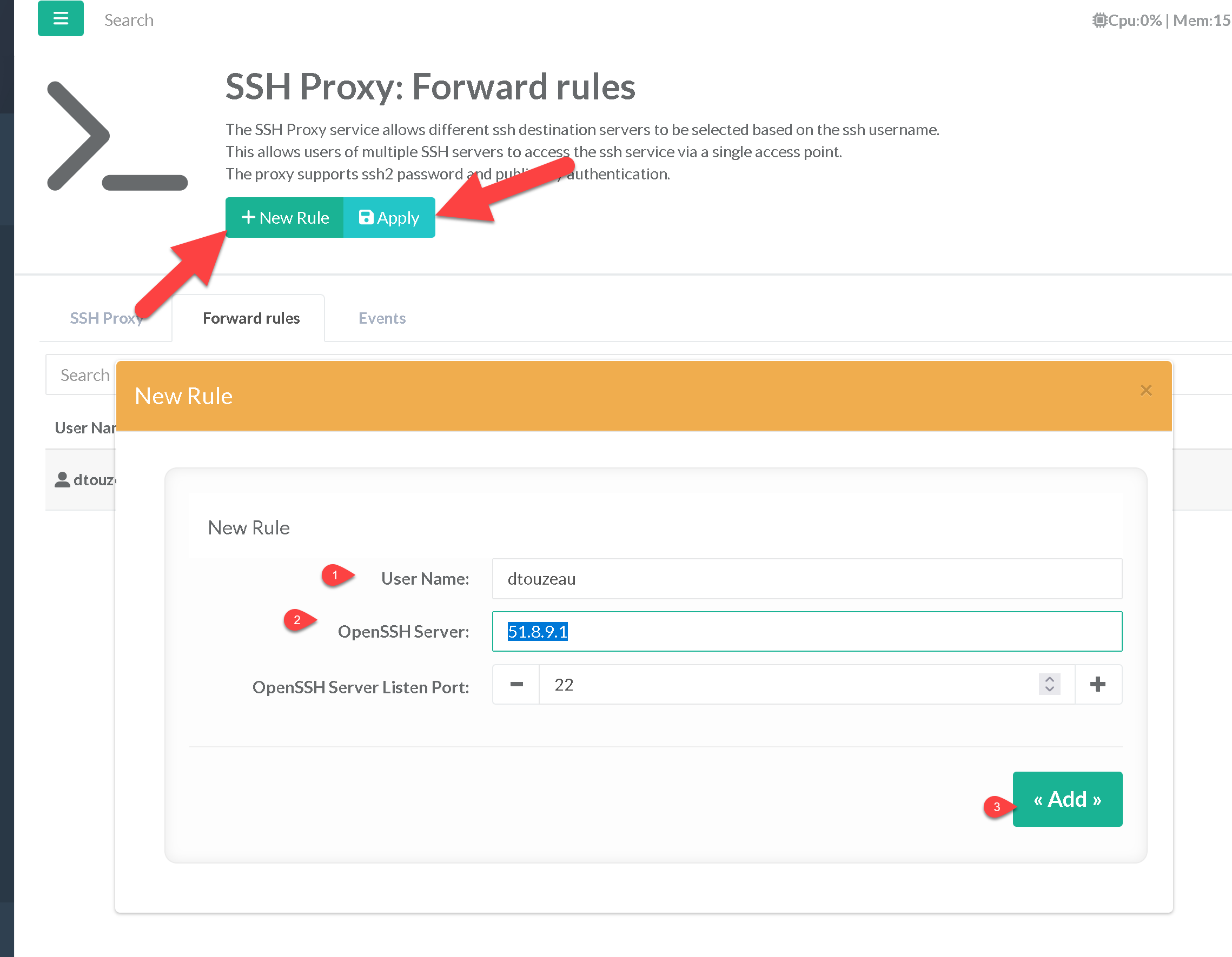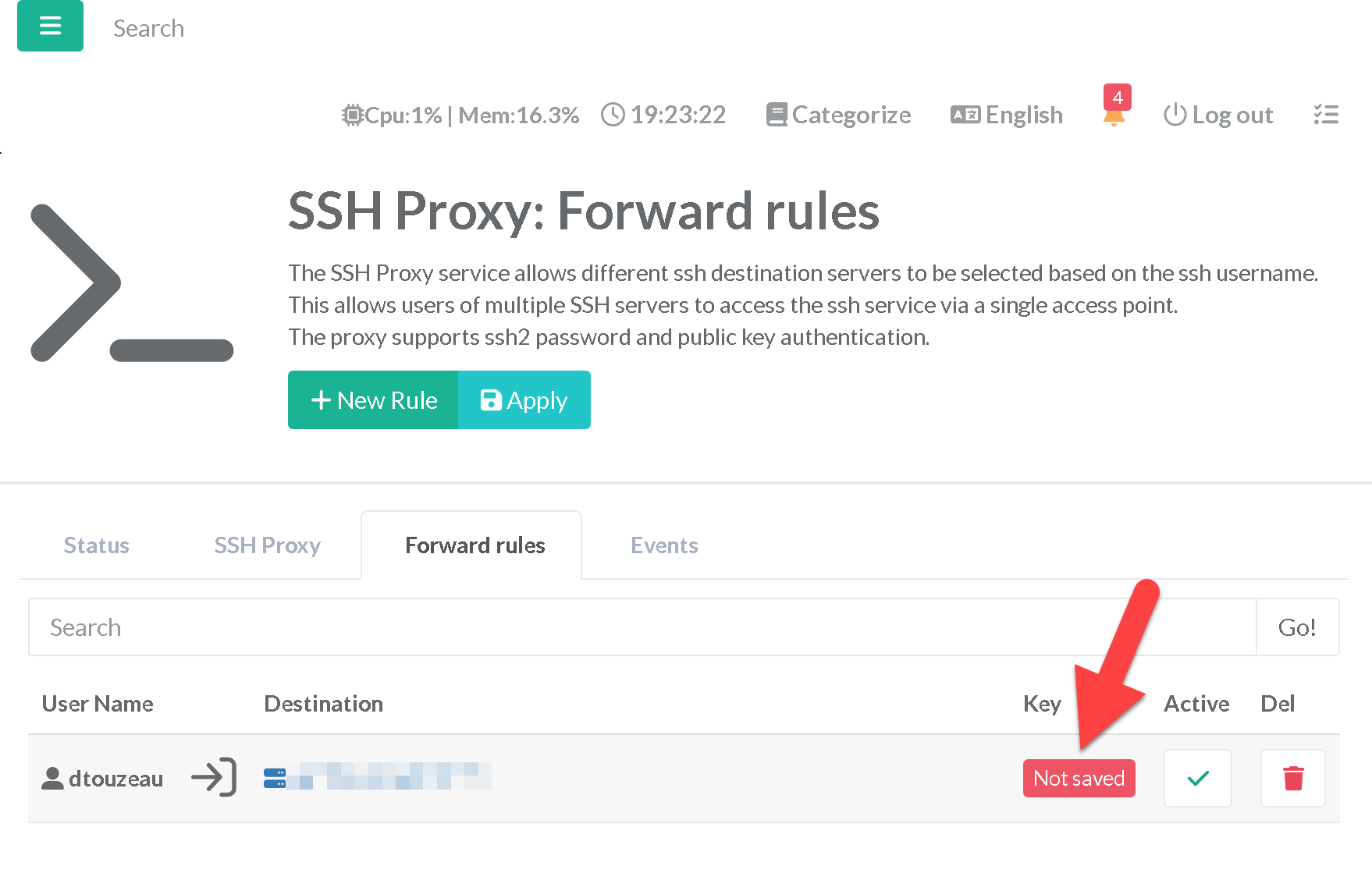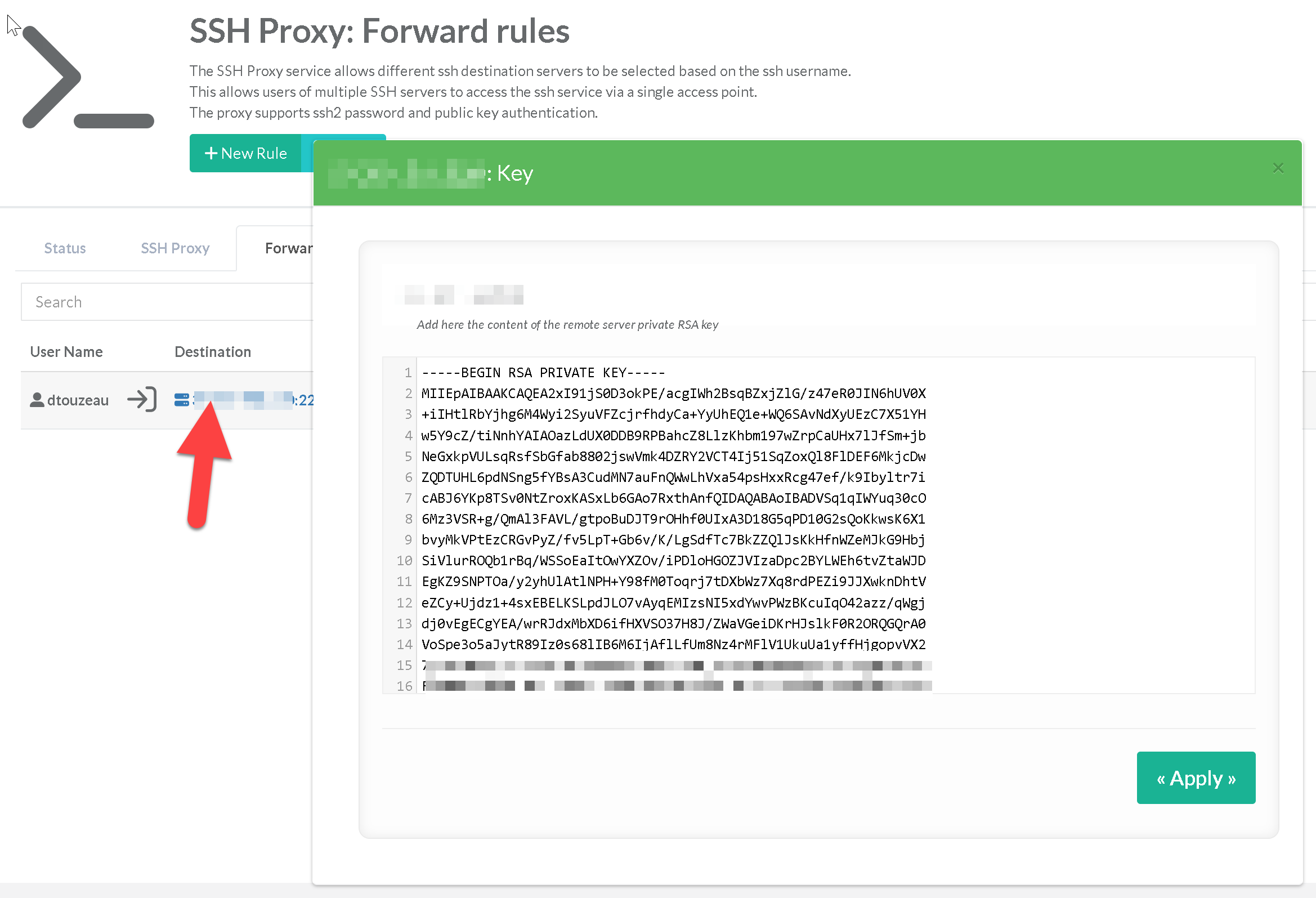 A forwarding rule is used to forward connections that are initiated on the SSH proxy to the destination server through the user account.