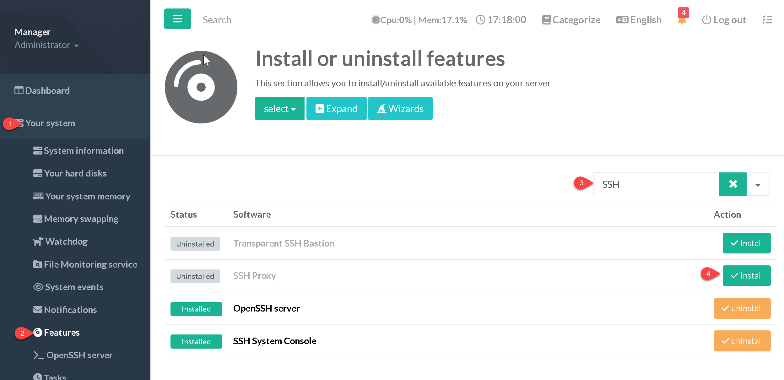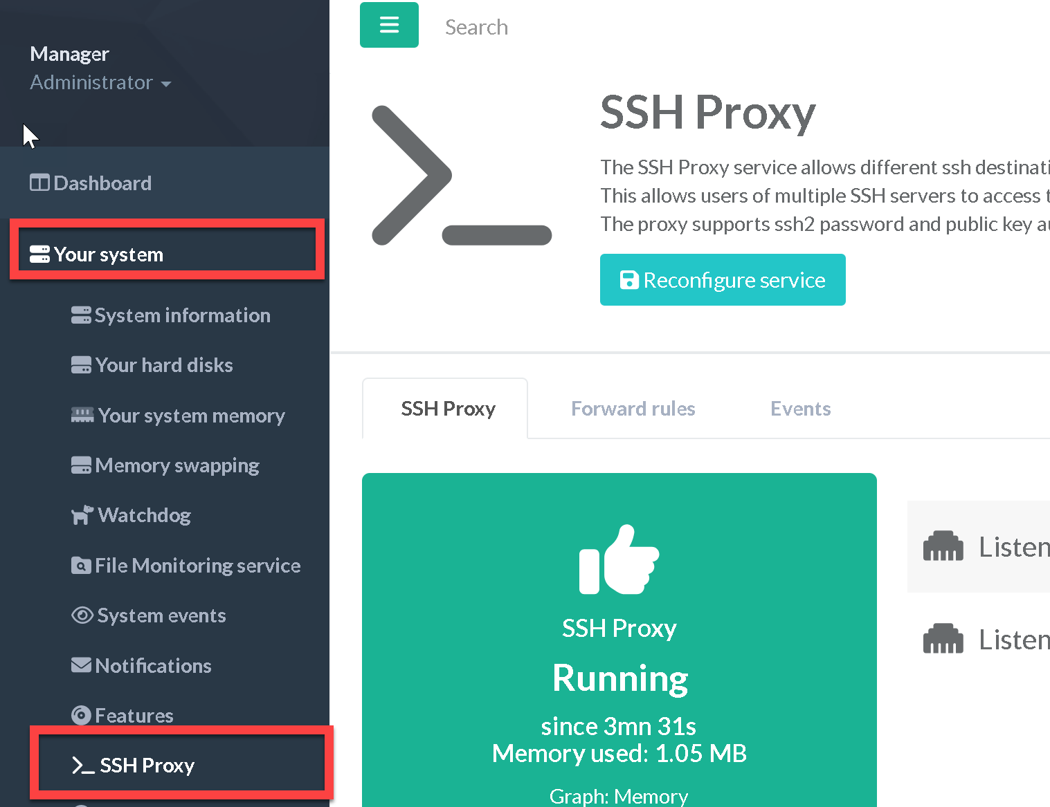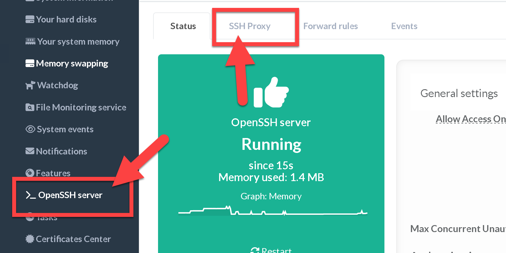 - If the local SSH service is installed, you will find the SSH proxy inside the “Your System” > “OpenSSH server” > “SSH Proxy” tab