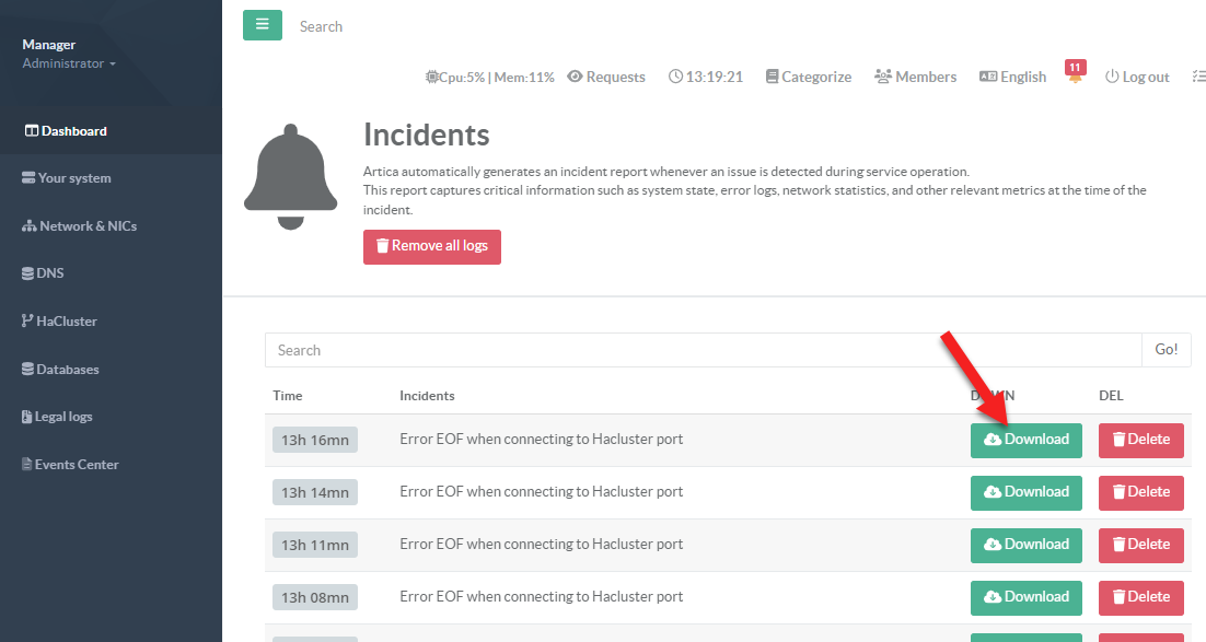 Artica automatically generates an incident report whenever an issue is detected during service operation.