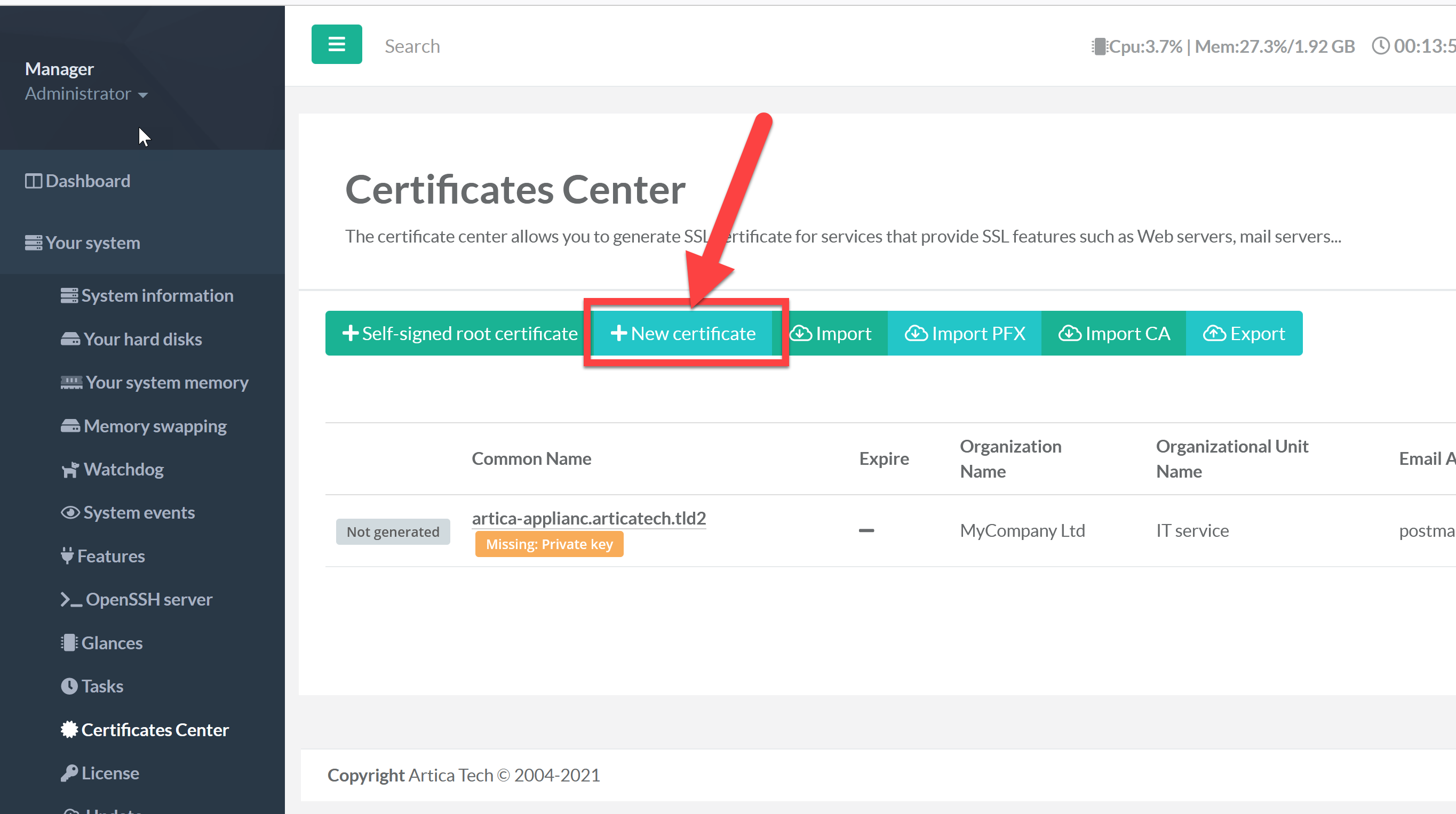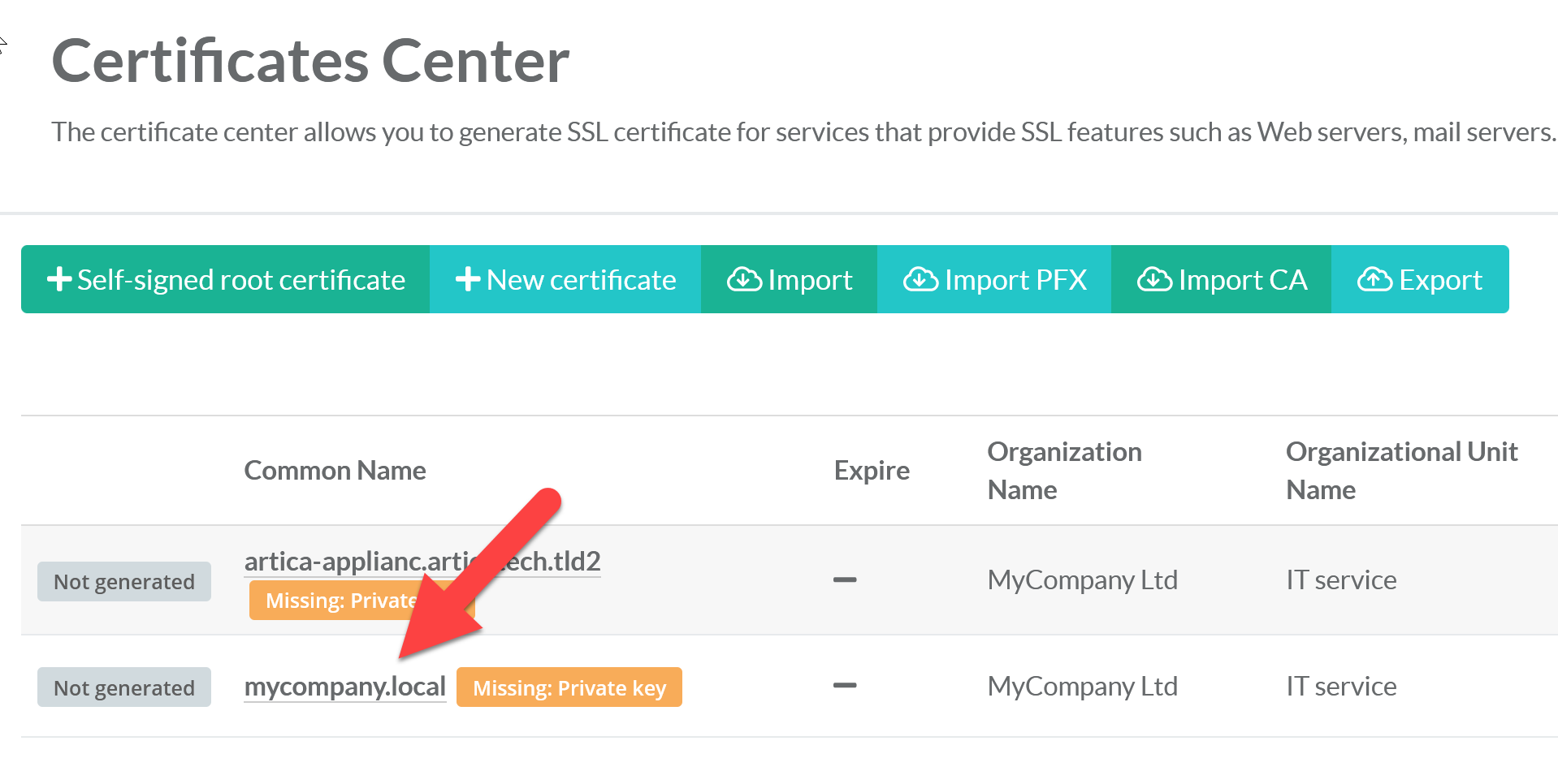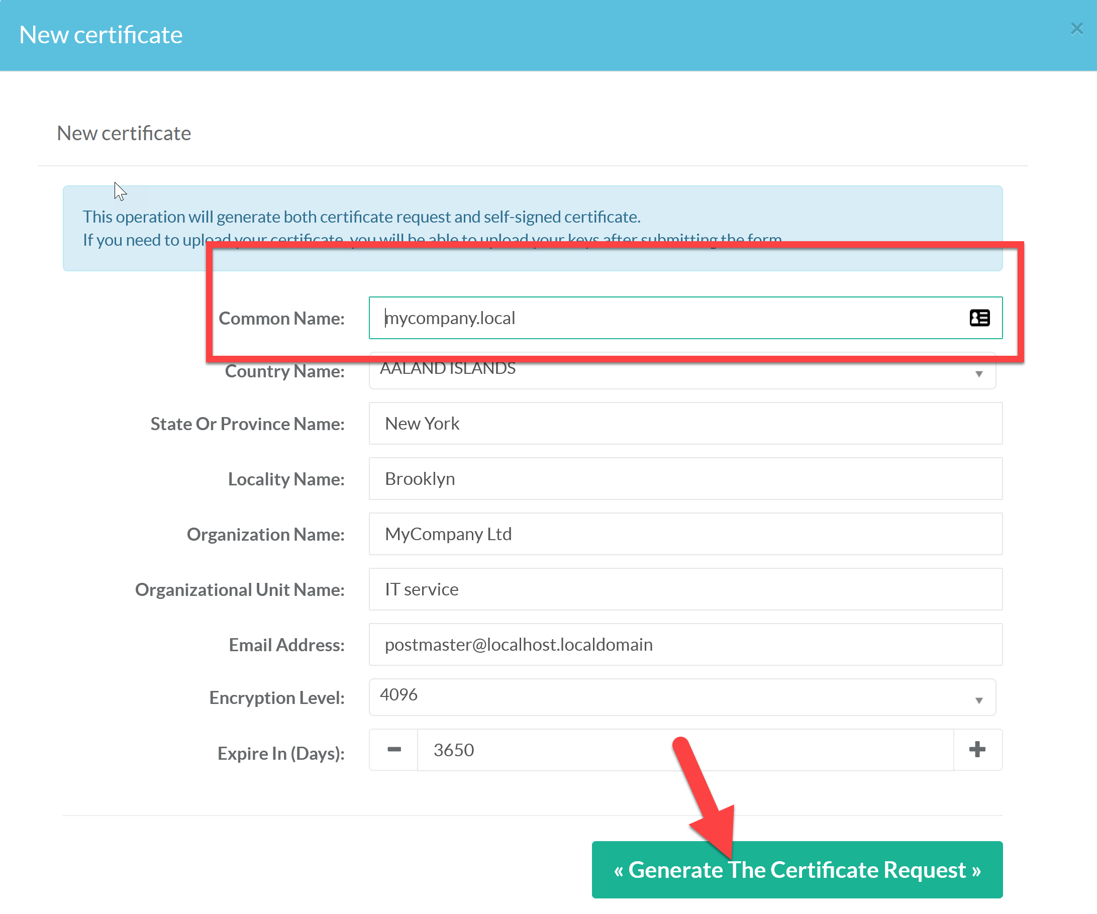 - On the CSR form, just take care about the Common Name and generate the Certificate request.