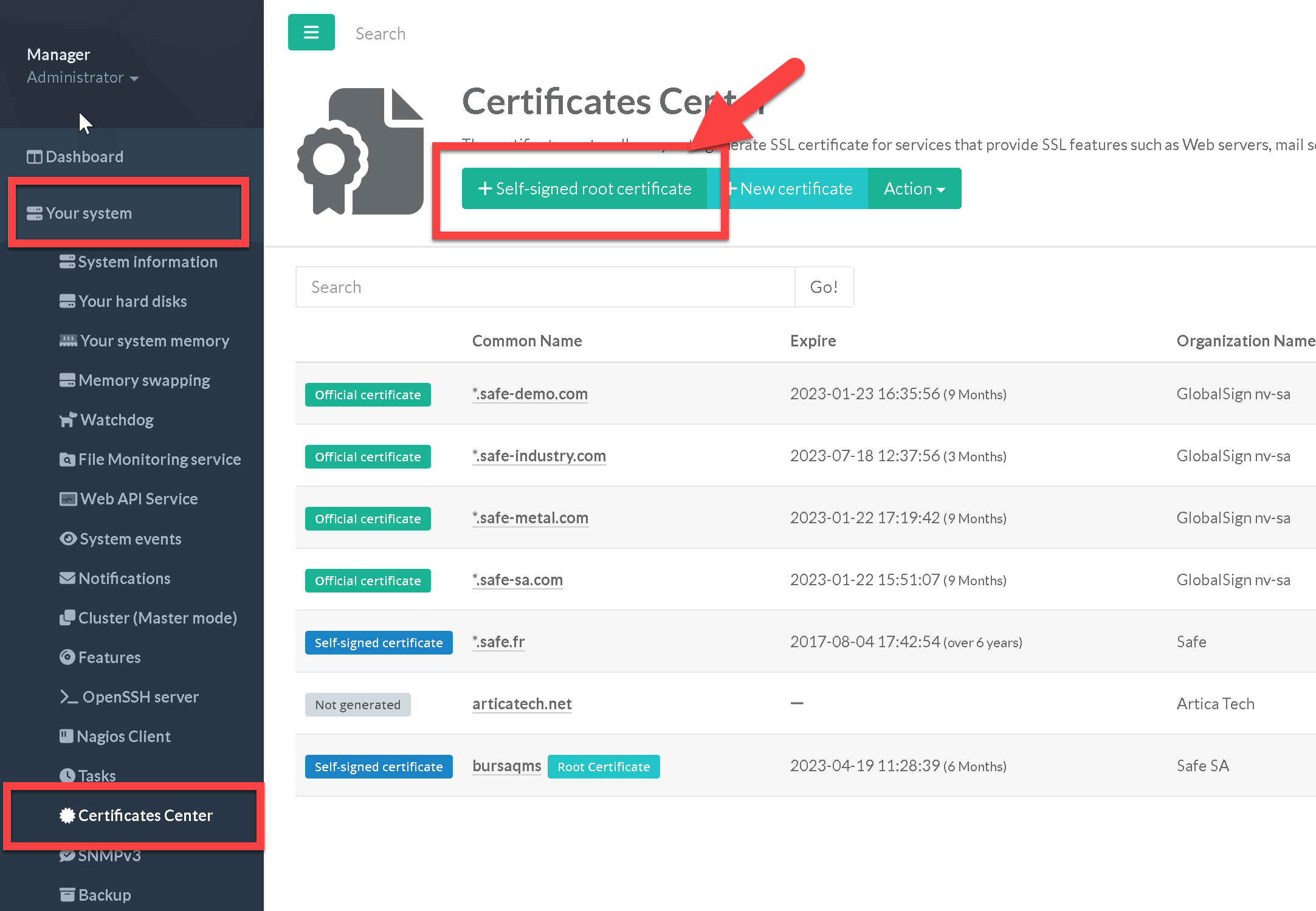 “Your System” > “Certificates Center”