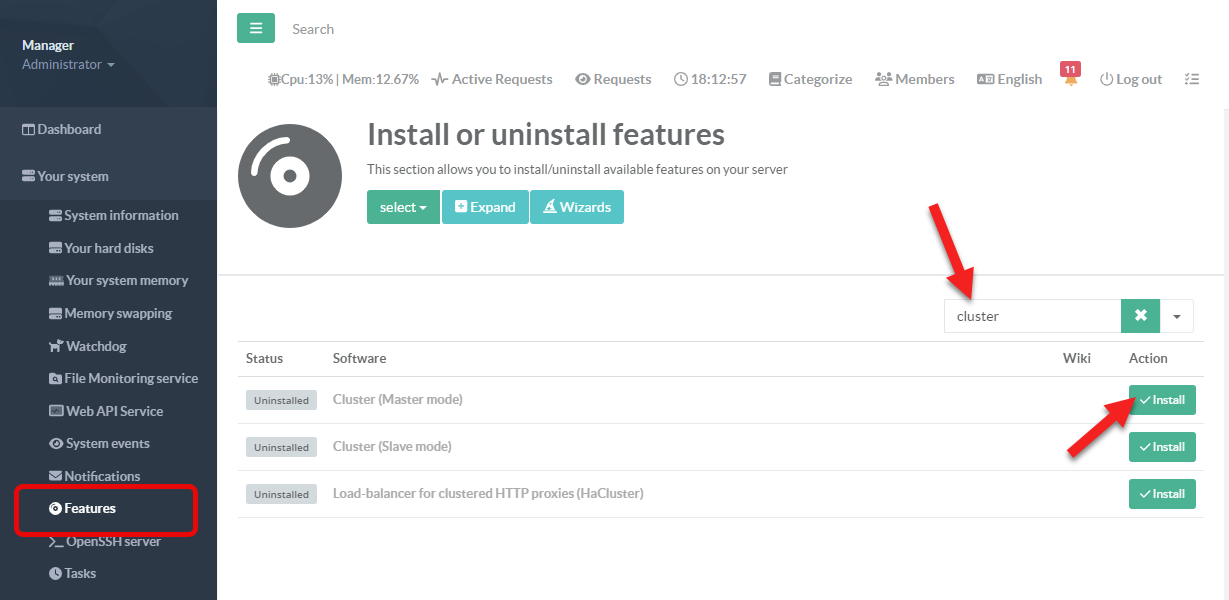 Your system > Featurescluster”Cluster (Master mode )”