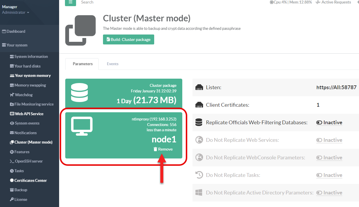If a node connects to your master server, it will be referenced in the list of connected nodes. You can delete a node, but if it reconnects to your master server, it will be added back to the list.