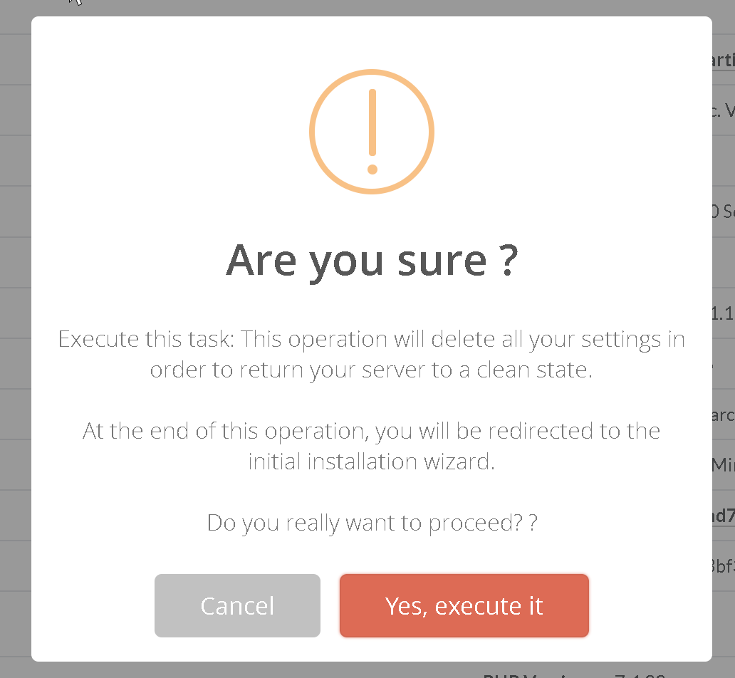 This operation allows you to start from scratch by deleting the configuration data.