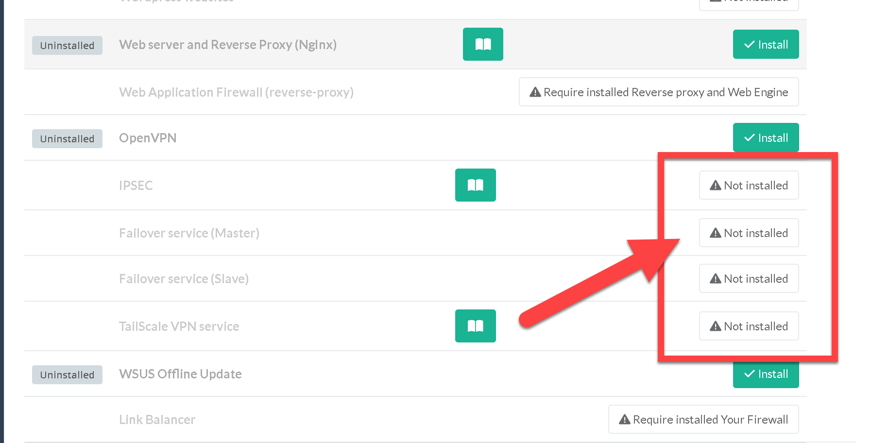 When a feature is marked as not installed, it means that Artica has not detected the presence of the software on the system disk.