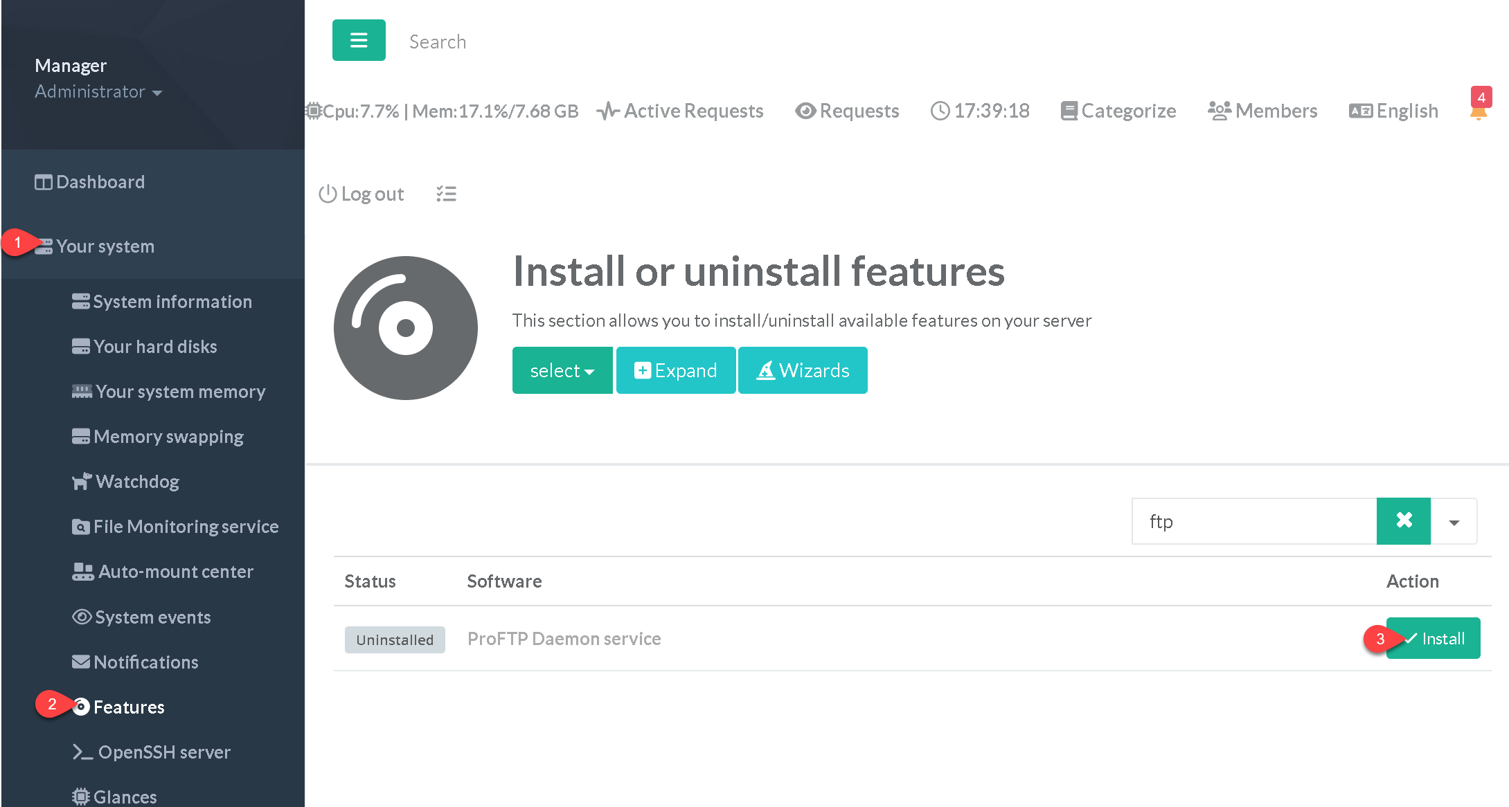 If the ProFTPD software is installed on the hard disk of your Artica server, you can install the ProFTP Daemon service