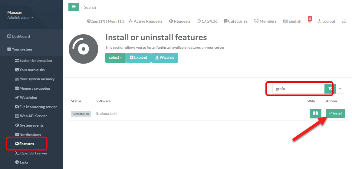 By installing Grafana Loki, Artica will install the Grafana ecosystem, enabling you to create metrics on your Artica server or any other system using Grafana.