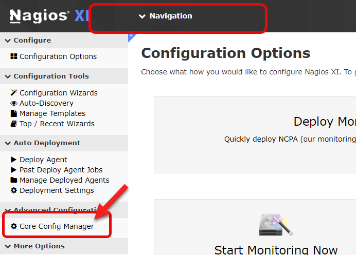 On the nagios server go to Configure and on the left menu, go to Advanced configuration > Core Config Manager