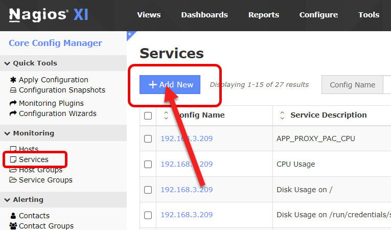 Monitoring”, click on “Services” sub-menu and click on Add New