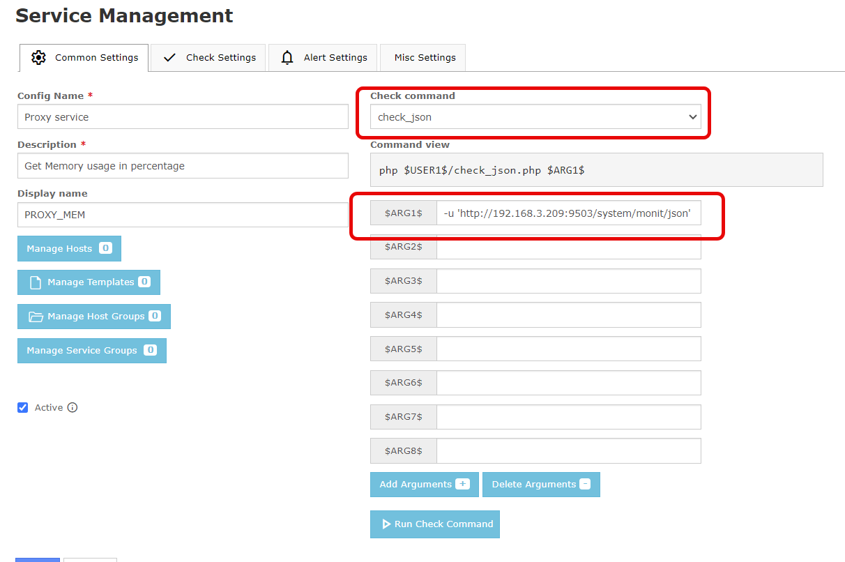 $ARG1$, type-u 'http://1.2.3.4:9503/system/monit/json' -k 'Services.APP_SQUID.Memory.Percent' -w 90 -c 95