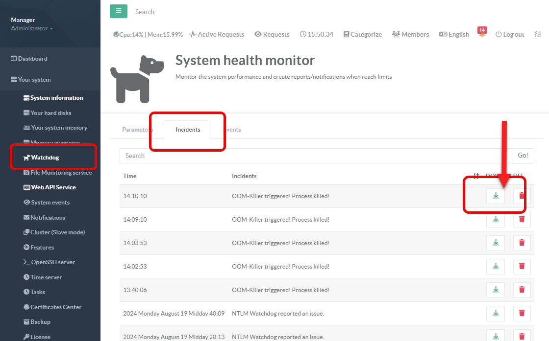 Artica is able to detect the OOM-Killer execution and write events/reportThis feature is available on Artica v4.50 SP3 or Artica v4.50 SP2 Hotfix 20250323-15