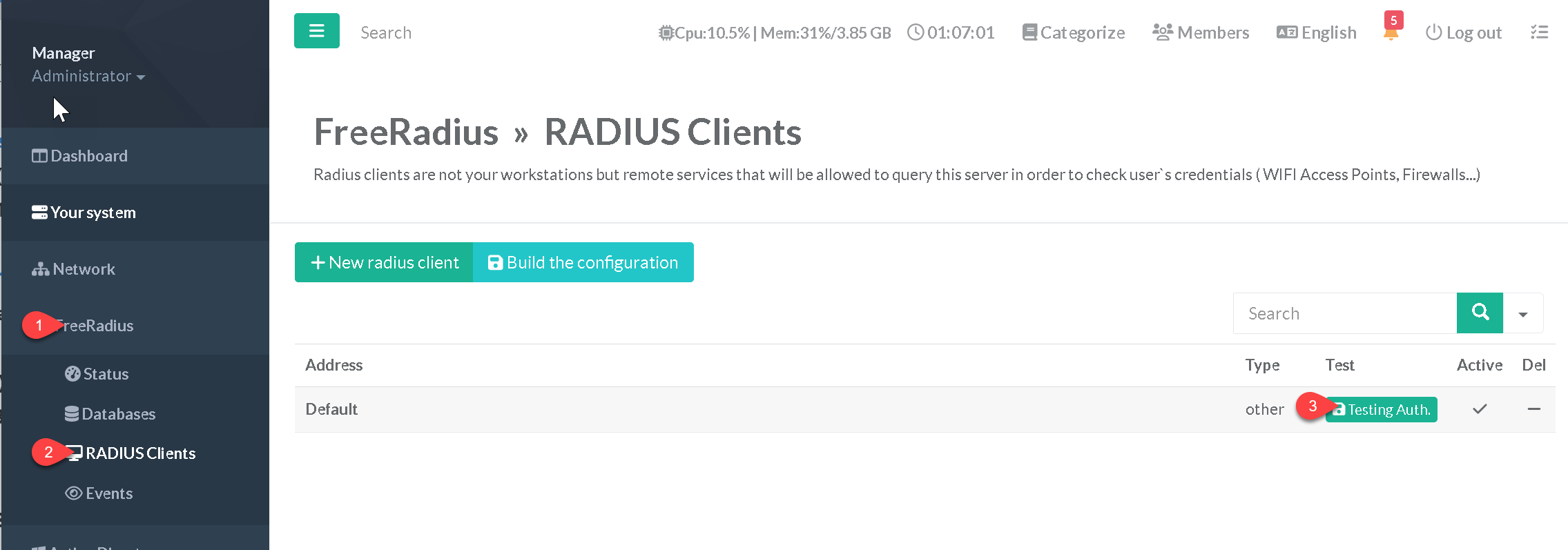 If Radius server is installed, it automatically takes Active Directory connections defined in the Active Directory Feature