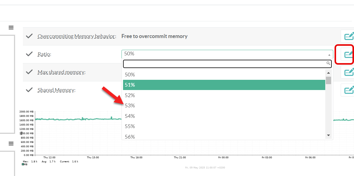 Ratio is the Percentage of memory that is allowed for overcommit.