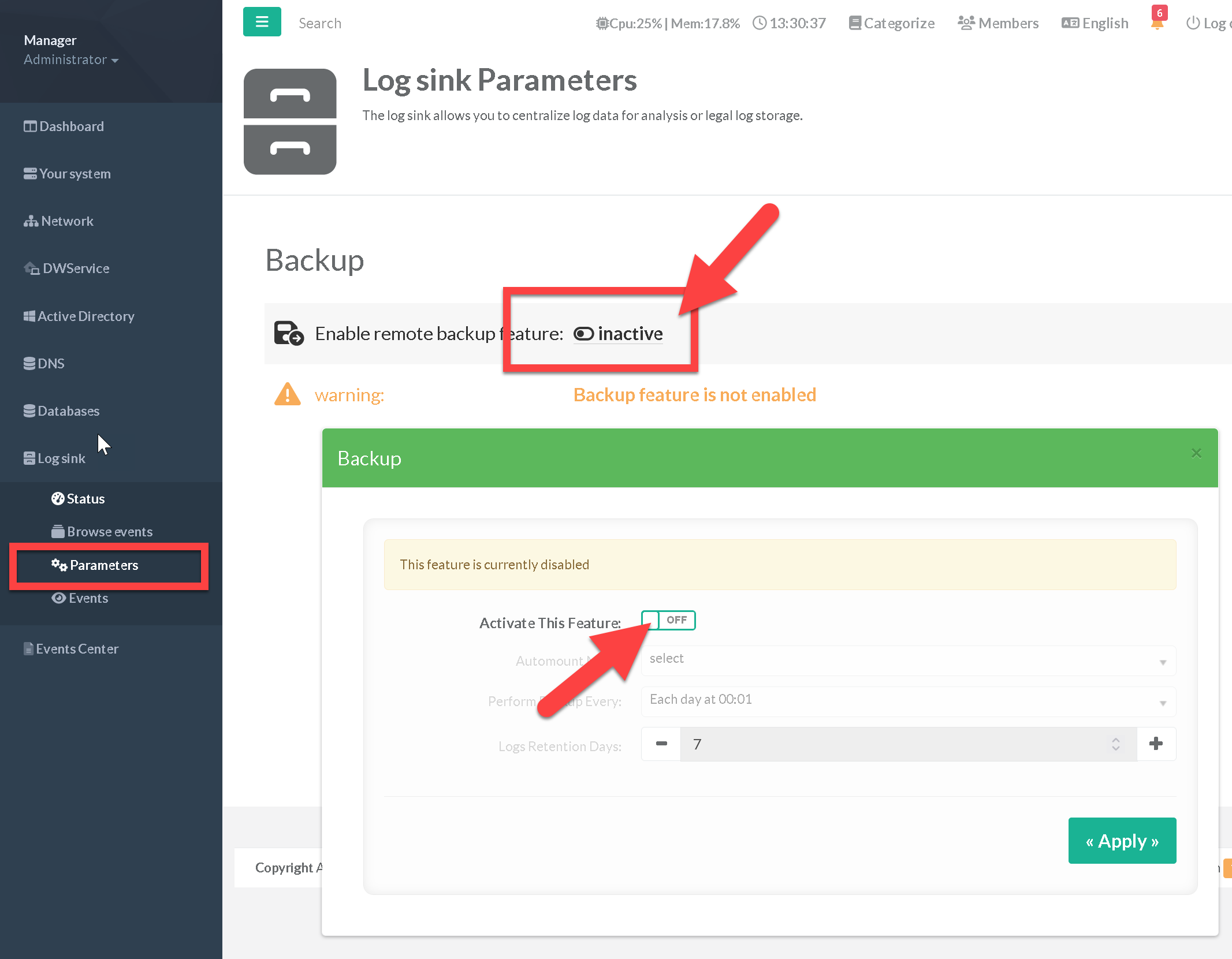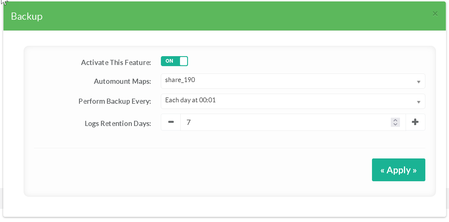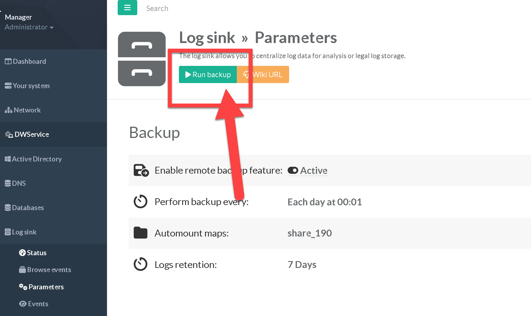 After enabling the backup feature, you can click on the button “Run Backup” to launch the backup job without waiting for the schedule.