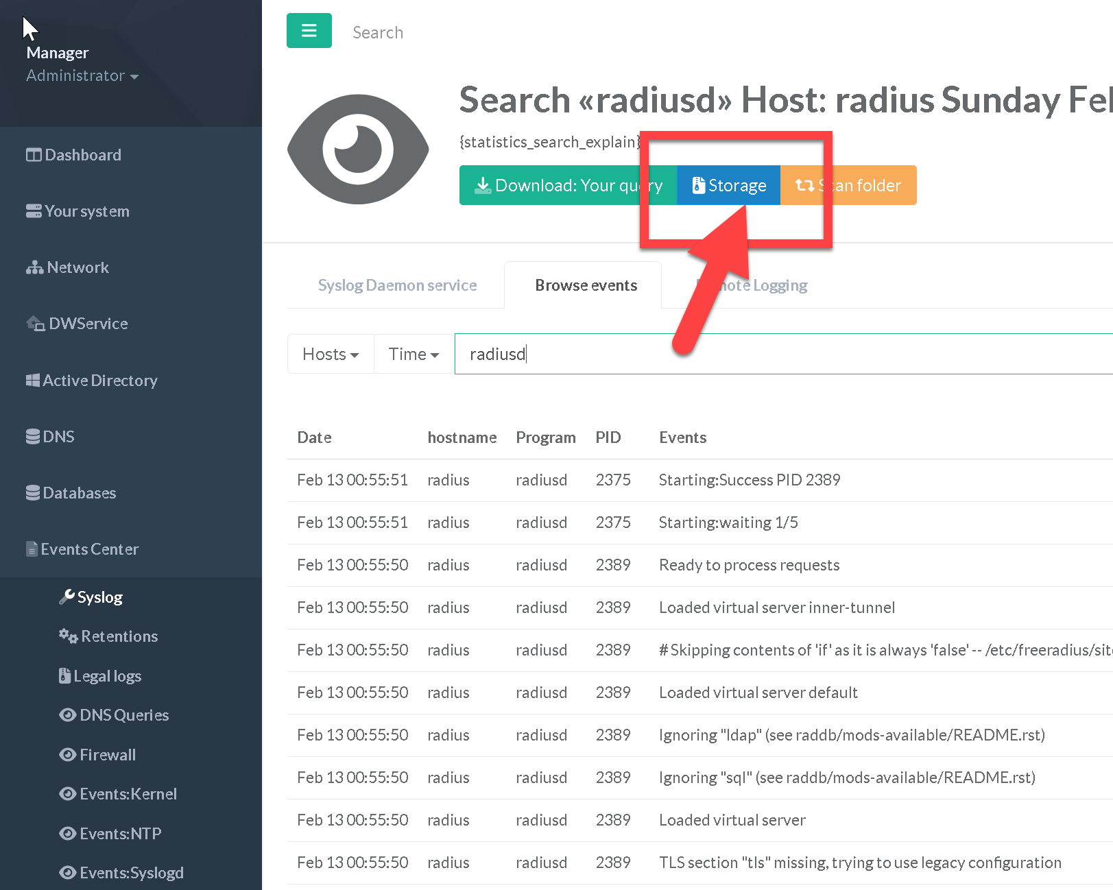 This feature allows you to retrieve the backuped source log in order to send it to the authorities.