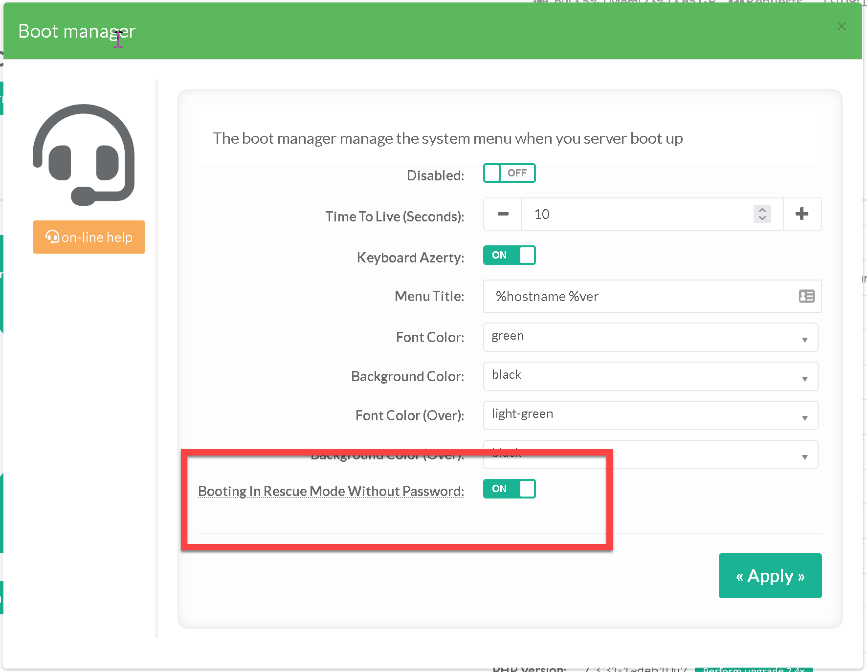 This works only If you have customized the boot manager and enabled the “Booting in Rescue mode without password”