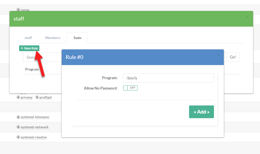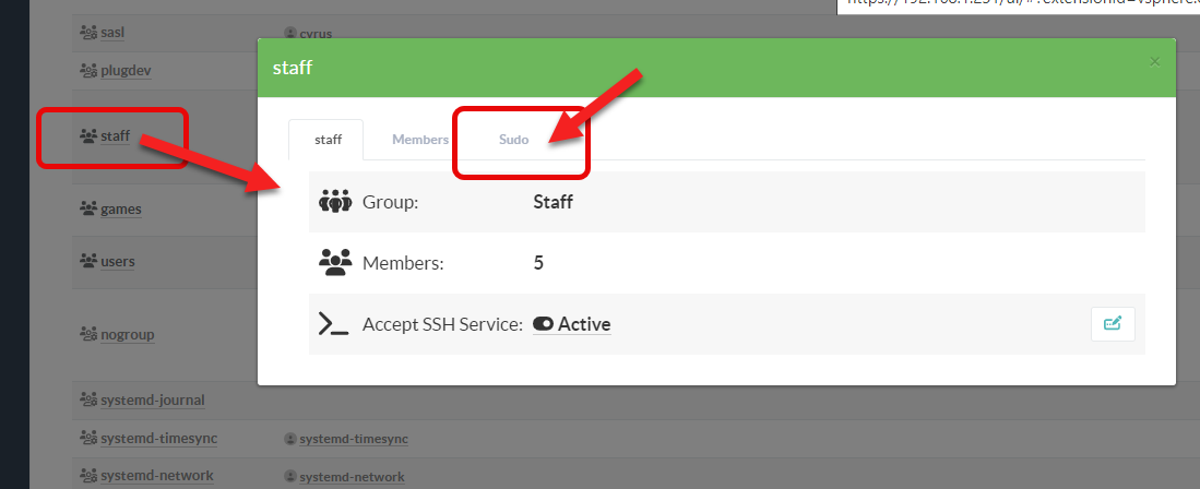 After you install the sudo package, Artica will automatically detect it and enable sudo-privilege management in the System User section.