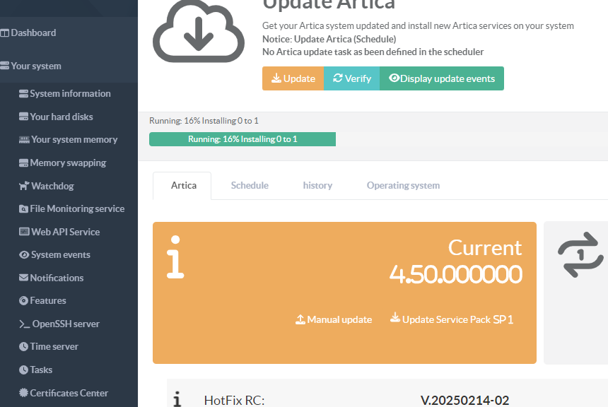 Download the Service pack 1 compressed package : ArticaP1.tgz ( 245 MB )