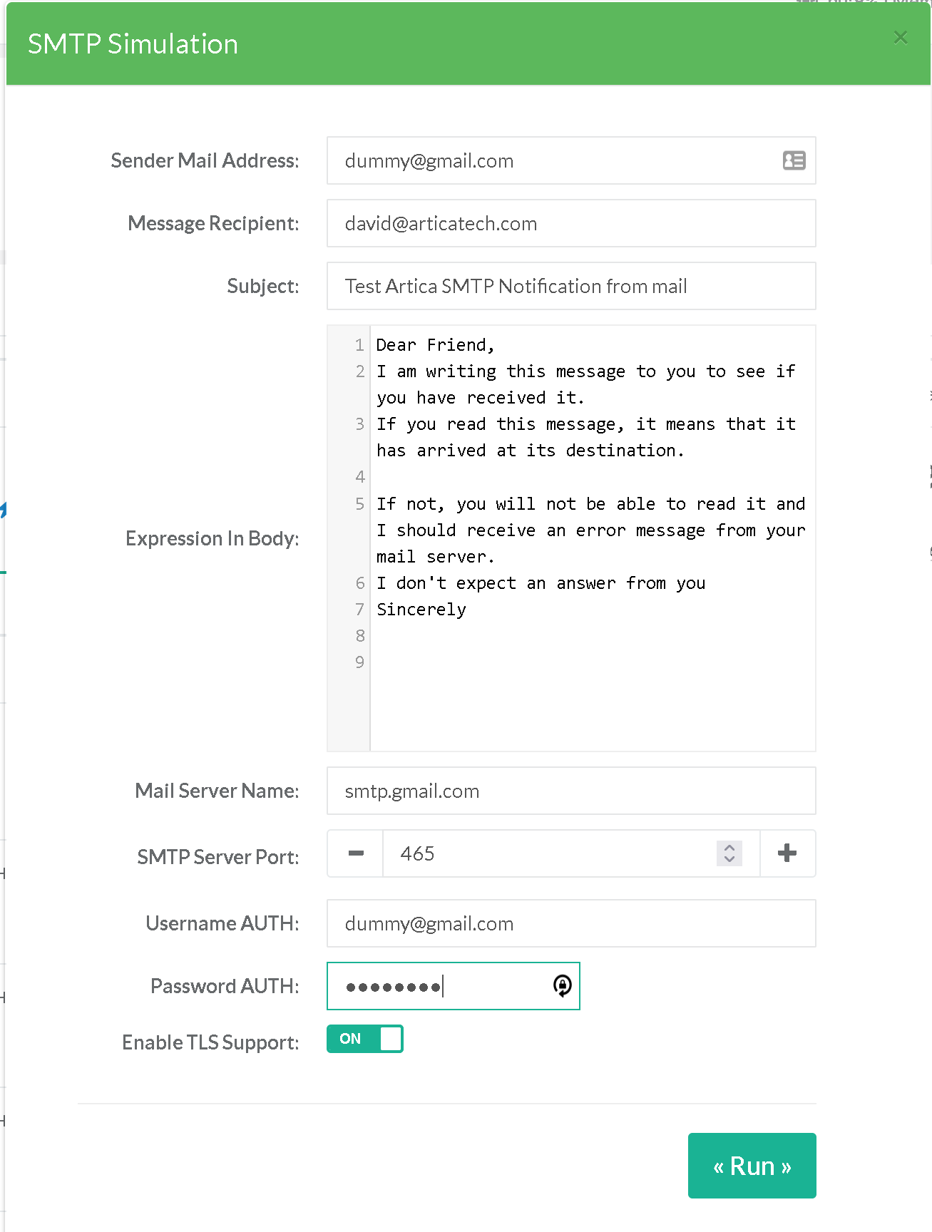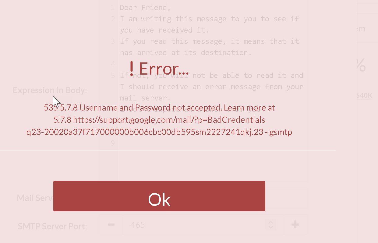 - If Artica is unable to send the message a red popup with the error message is displayed: