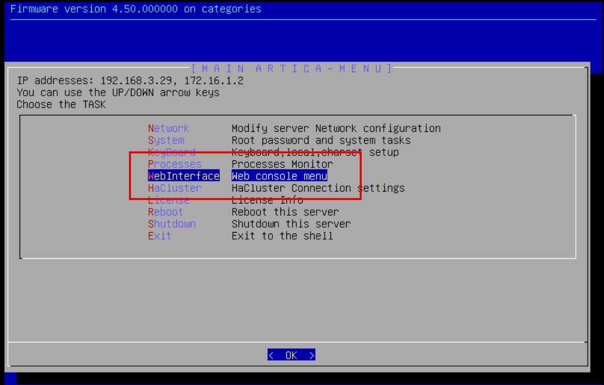 Web Console menu" item