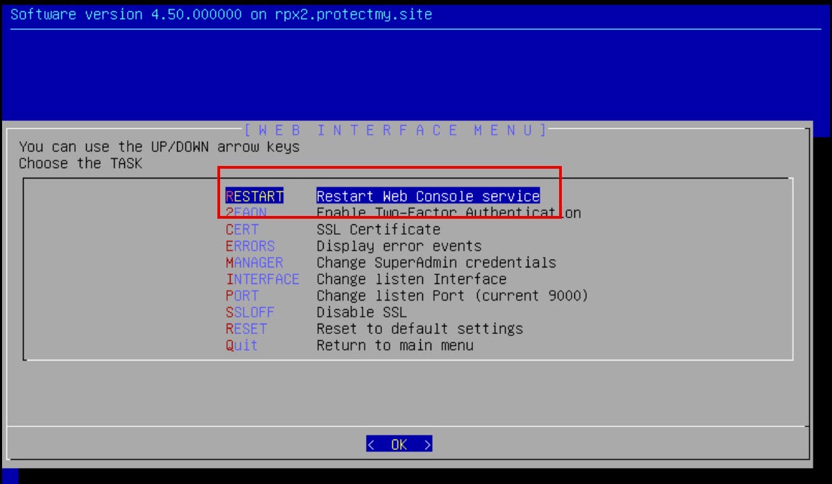 Restart Web Console service” item