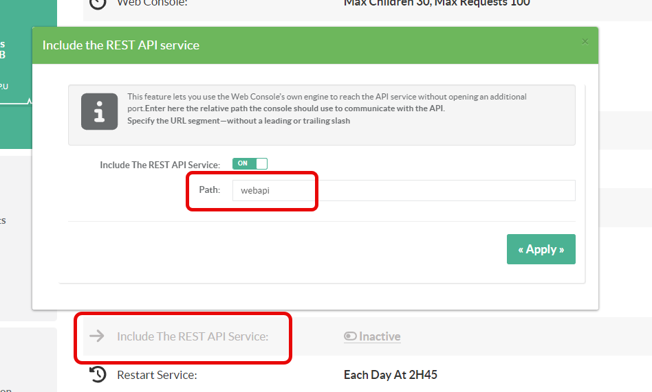 Use this option to have the Web Console act as a built-in reverse proxy for the API service.