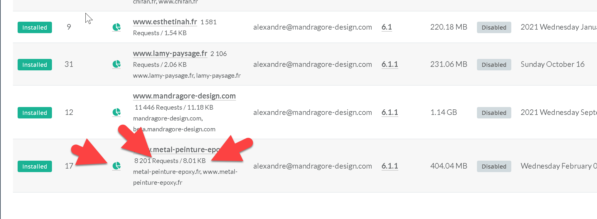 - A new icon representing a green pie chart allows you to display requests evolution curve when clicking on it.