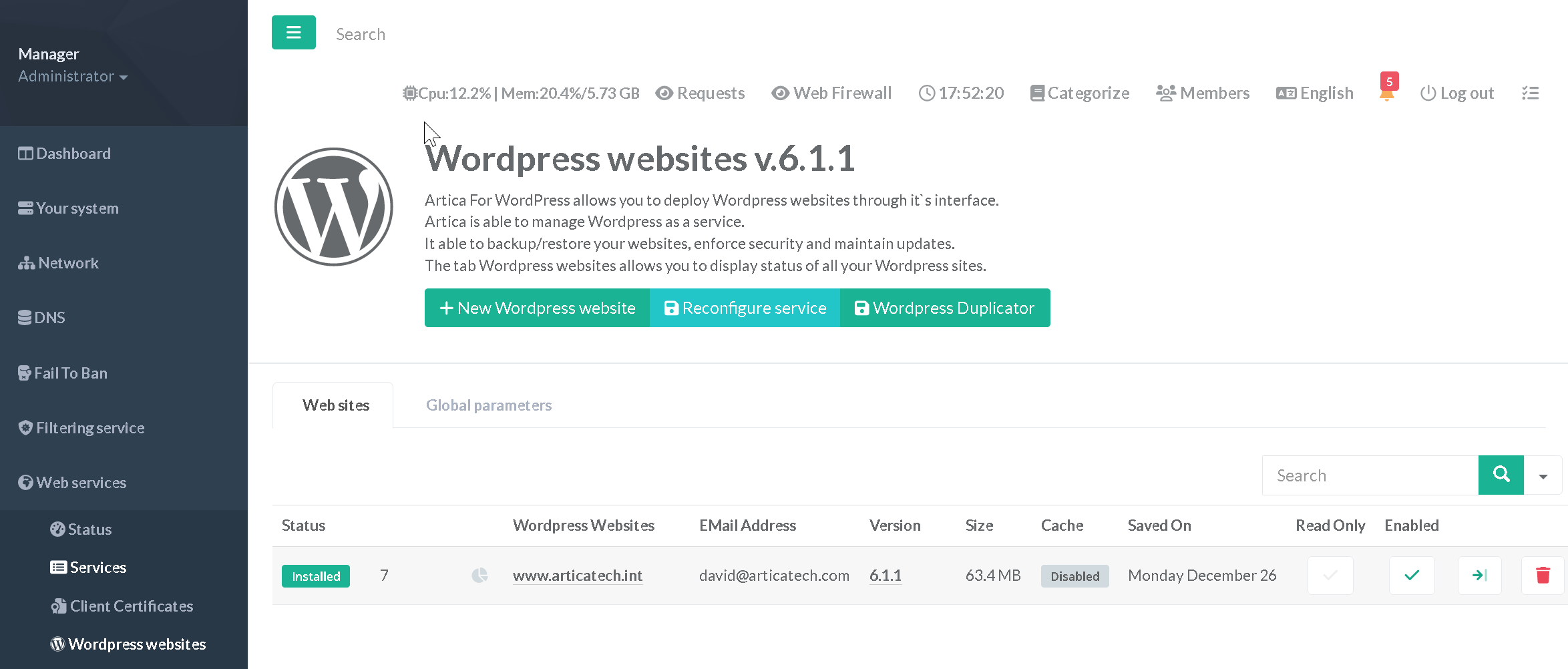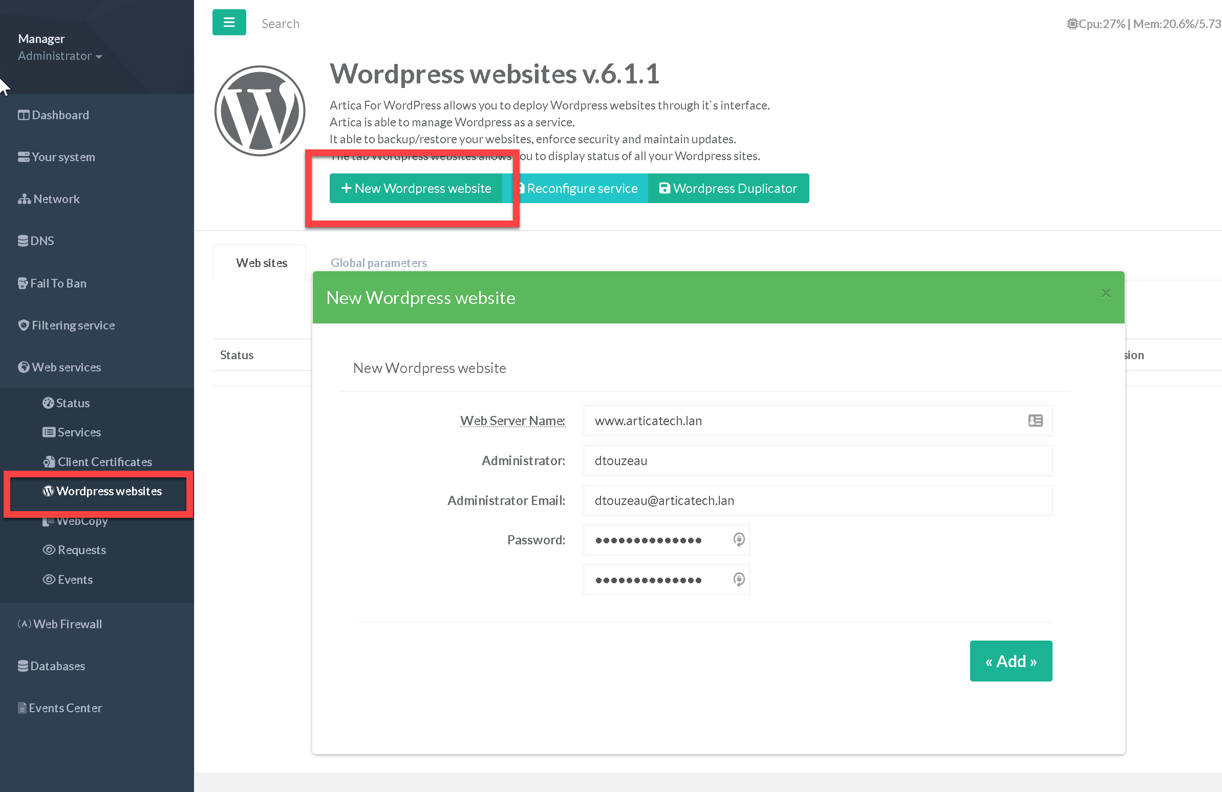 Web services” > “Wordpress websites”