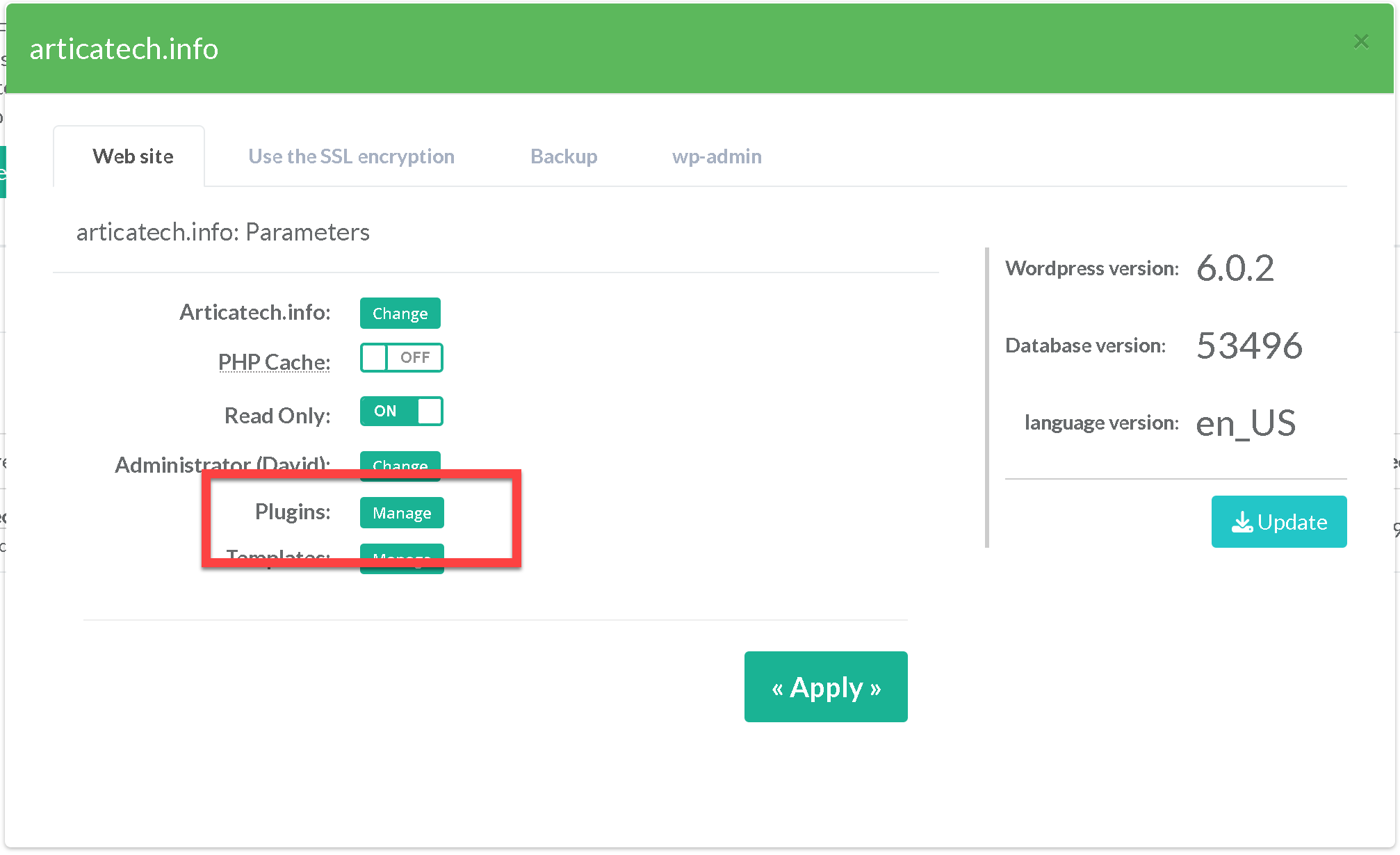 - If you want to enable a specific plugin, click on the “Disabled” grey button associated to your template.
