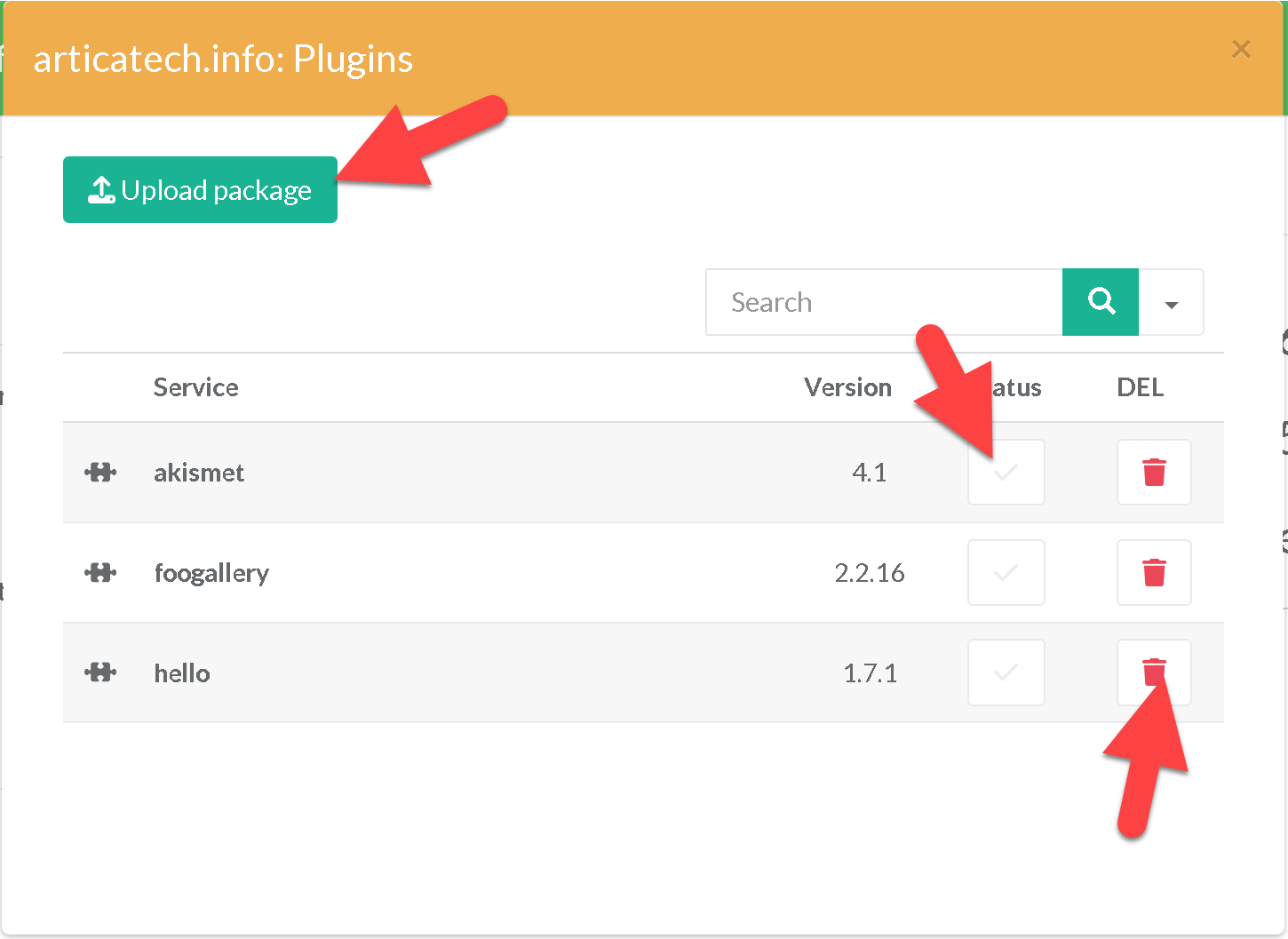 - If you need to upload a new Plugin, use the “Upload package” button and select your zip file.