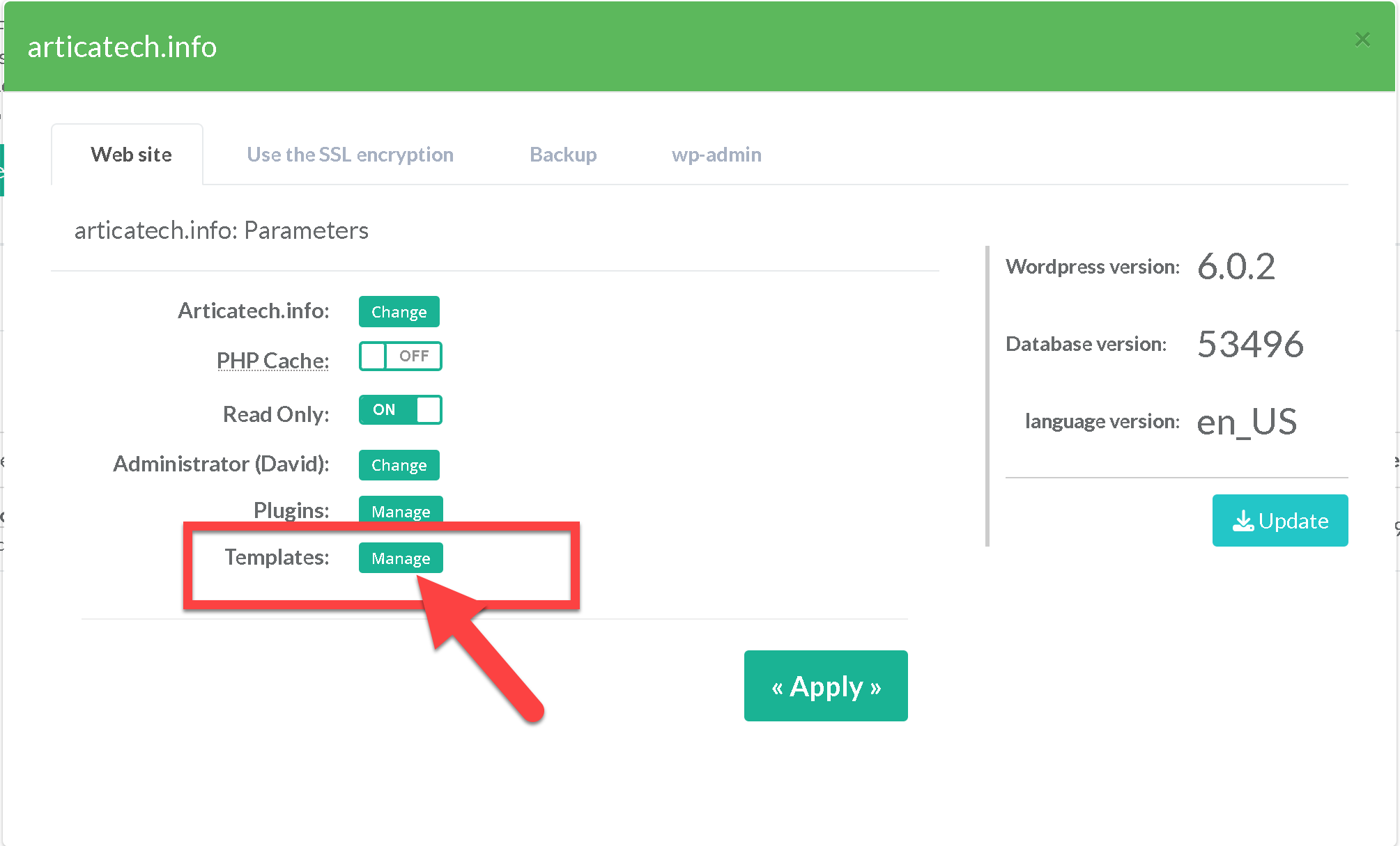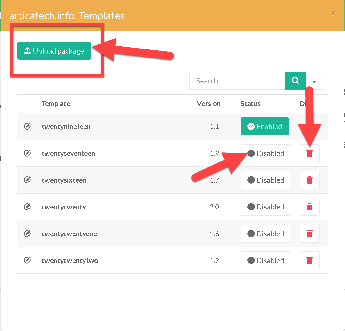 - If you need to upload a new template, use the “Upload package” button and select your zip file.